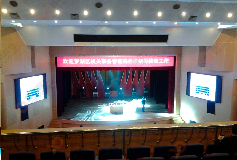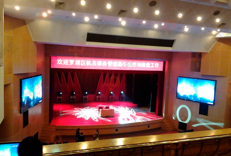 深圳羅湖區(qū)委戶內(nèi)舞臺(tái)LED顯示屏點(diǎn)亮。