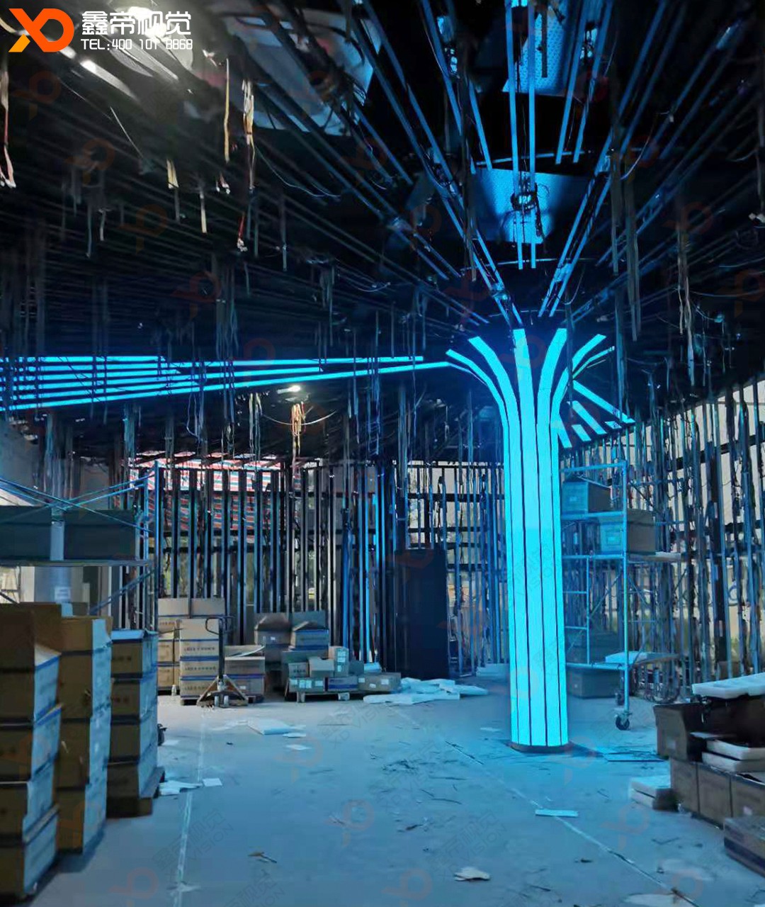四川LED智慧樹項目正在火熱施工中......樹形LED屏是通過LED模組構造成樹形,容入聲、影、光、電,渾然交織,用高科技手段多元化、立體化顯示的LED顯示屏。廣泛應用于規(guī)劃展示、數(shù)字中心展館、商場!