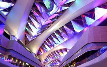 這是一棵生長在室內(nèi)的“參天大樹”。 由數(shù)根LED燈帶組成的樹干,被一個個彩色圓球組成的迷你花園所包圍著。 當(dāng)你把手放在任何一個球體上,便會觸發(fā)壓力傳感器,使其產(chǎn)生光能的脈動。 從球體上移開之后便播種了一顆種子,光能從球體轉(zhuǎn)移至郁郁蔥蔥的樹冠上,綻放一場絢麗的煙花。 游客可以不間斷的觸摸球體與大樹進(jìn)行互動,室內(nèi)的煙火大會瞬間被點燃!