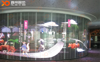 深圳市鑫帝視覺傾力打造獨(dú)家定制的LED透明環(huán)幕亮相廣東梅州丘成桐國際會議中心,該項(xiàng)目使用近200平米LED弧形透明屏,材料使用:高端國星2121 LED燈+高刷IC。