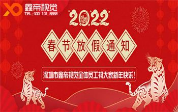 “屏”安喜樂;萬“視”順利;壬寅年(虎年)正月初十(陽歷:2022年2月10日)鑫帝視覺開工大吉!在此祝愿廣大客戶朋友、供應(yīng)商朋友和一直默默關(guān)心支持鑫帝的朋友們在新的一年:生意興隆、財源廣進、平安喜樂、萬事順利!